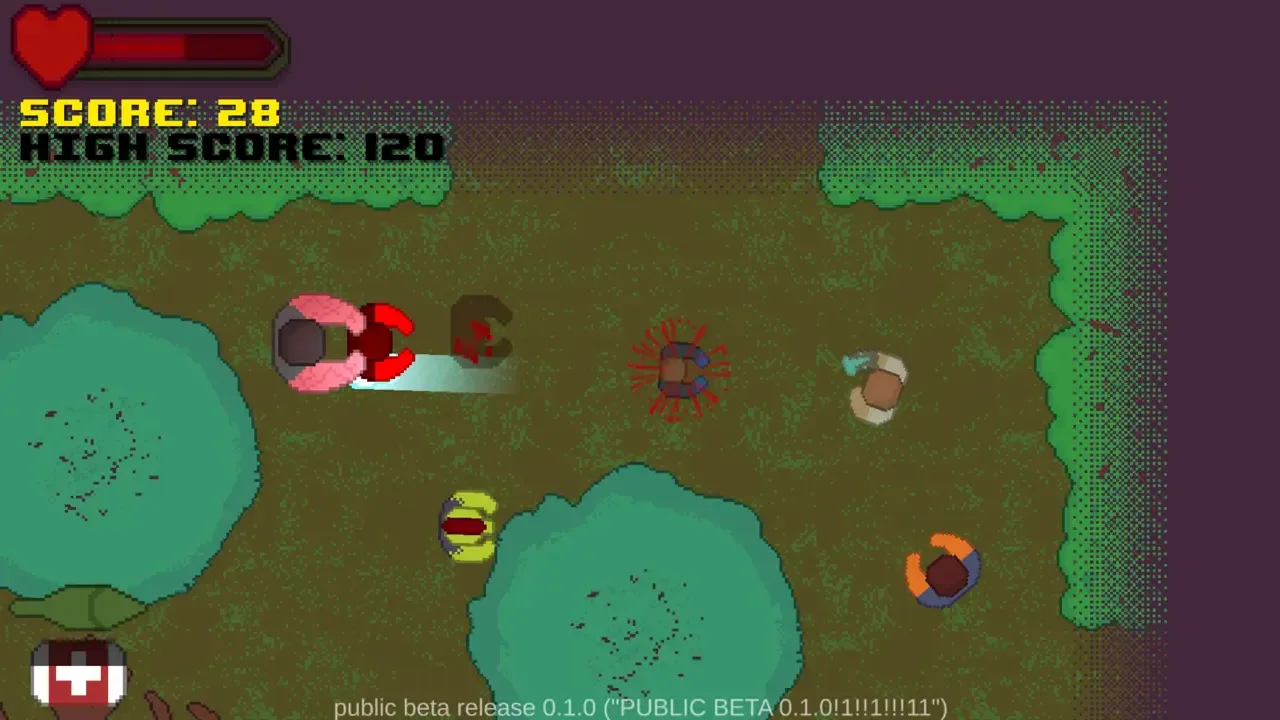 A top-down 2D pixel art zombie shooter. Featuring 20+ enemies, 7 upgradeable weapons, 6 active abilities and passive perks, unlockable player skins and more!