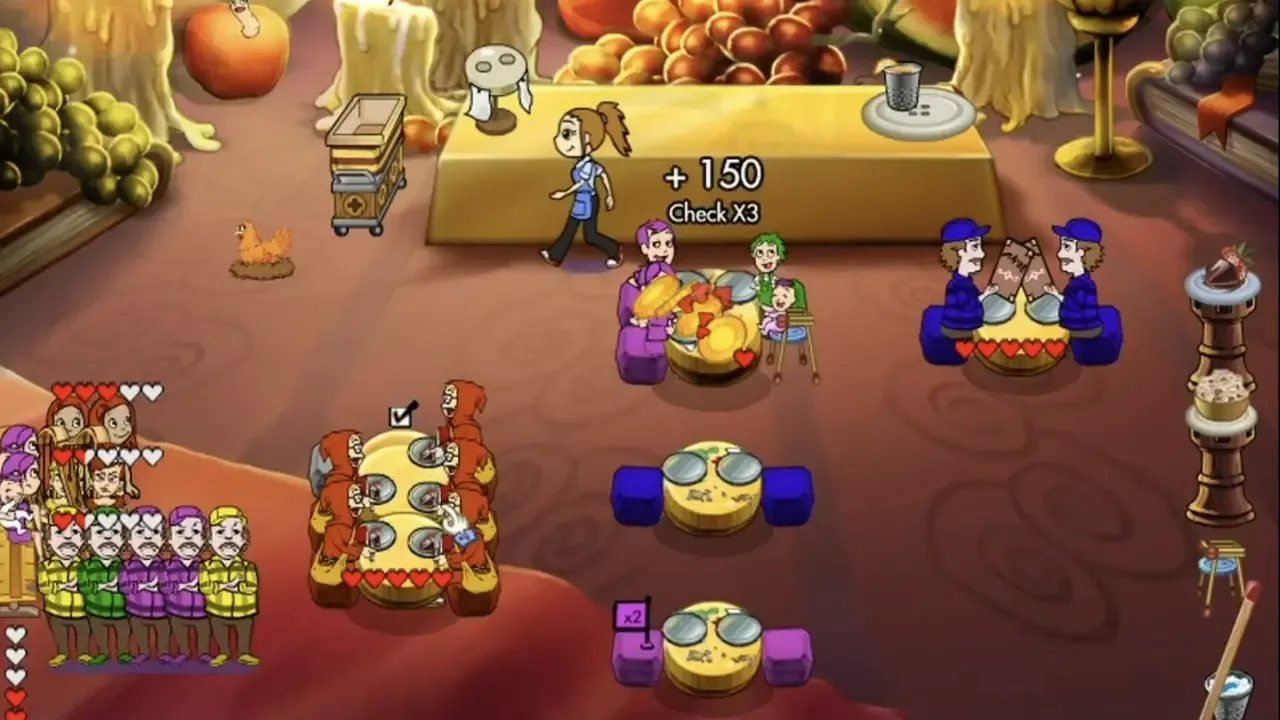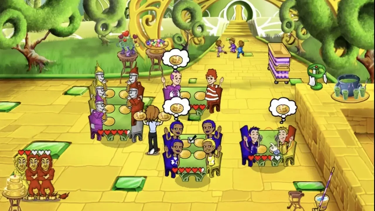 On a visit to her hometown, Flo and her Grandma Florence take a stroll down memory lane. Bring five restaurants back to life, and meet new customers like the Hungry Man and the Celebrity. Take special care of customers with reservations and place flowers at tables in order to make diners happier. Stuck with a 4-person group and no 4-person tables? Now you can move tables together to create a larger table. Help restore Flo's hometown now!