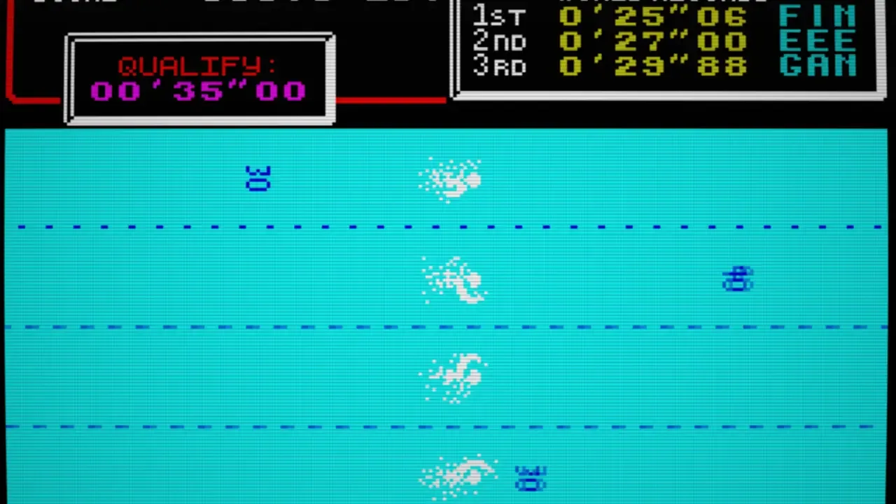 Hyper Sports simulates six hyper-sporting events. Swimming – Race against opponents while managing breathing and stroke rhythm. Skeet Shooting – Use fast reflexes to shoot flying targets with computer-guided sights. 🤸 Long Horse – Perform gymnastic vaults with timed somersaults and landings. Archery – Shoot arrows at a moving target, adjusting for wind speed and angle. Triple Jump – Involves precise timing across hop, step, and jump phases. ️ Weight Lifting – Requires timing and strength to lift successfully.