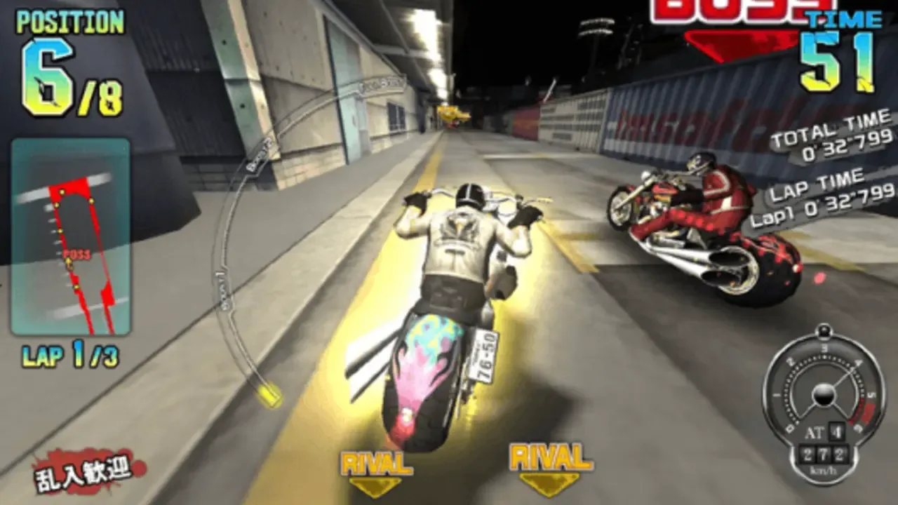 Bank hard through turns to build the boost meter, and then straighten the bike out to blast past your rivals! For even more speed, draft behind cars, trucks, and other motorcycles.