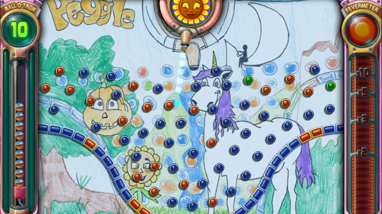 The sun has set at the Peggle Institute, but the bouncy delight has just begun! Join the Peggle Masters on a dreamtime adventure of alter egos and peg-tastic action. Stay up late to aim, shoot and clear orange pegs, and bask in Extreme Fever glory under the silver moon. Then, put your Peggle skills to the ultimate test in Challenge mode. If you can master all that fevered action, play to your heart's content with Duel mode and Quick Play. Plus, you can stock your Trophy Room and revel in clickable replays for even more rebounding joy! Explore all 60 levels in Adventure mode Meet a new Peggle Master and learn a new Magic Power Test your skills in 60 challenges Unlock Duel mode to compete against friends and the computer Celebrate your Peggle prowess with clickable replays and a Trophy Room!