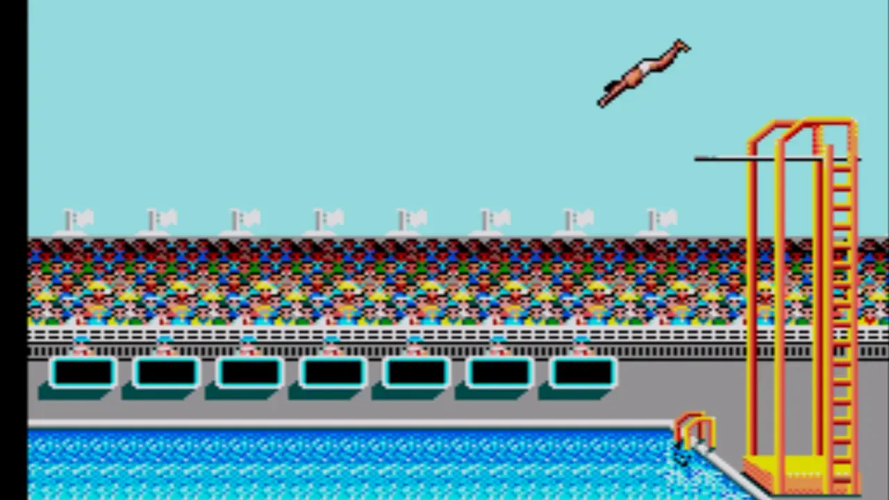 Summer Games allows up to eight players to compete in a series of summer themed Olympic events. The gameplay is similar to the other entries in Epyx "games" series. Each player can choose a country to represent, and then takes turns competing in various events to see who will win the gold medal! The game allows you to compete in all of the events sequentially, choose a few events, choose just one event, or practice an event. The events available vary slightly depending on the platform, and may include: Pole vault Platform diving 4x400 meter relay 100 meter dash Gymnastics Freestyle swimming Skeet shooting 100 meter freestyle Rowing