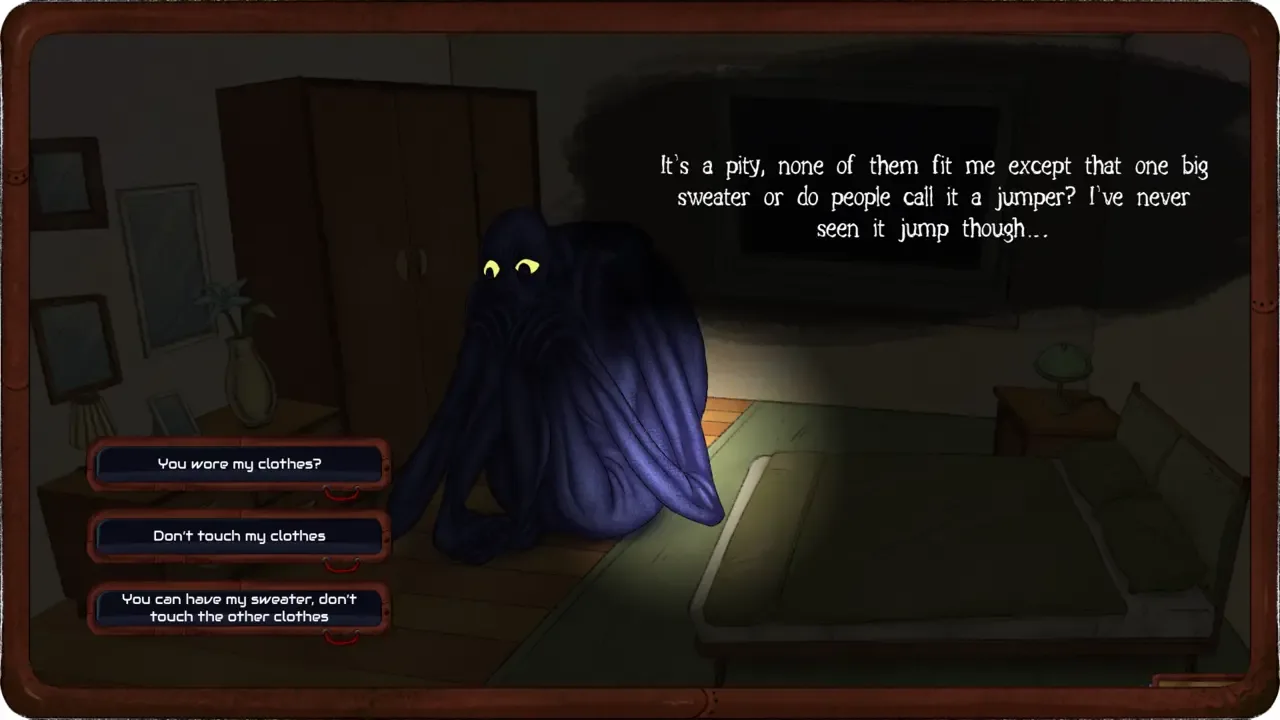A sentient dating simulator is determined that you date monsters - starting with your sleep paralysis demon. Learn their language and earn their trust. Or sabotage it and watch it unravel.